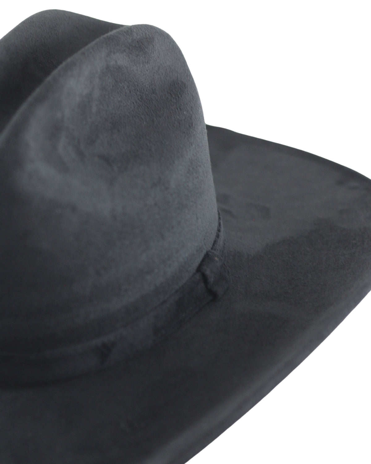 Soft felt cowboy hat with a high cattleman-style crown and a slightly curved wide brim. It includes a band of the same material that gives it a clean and elegant finish. Inside it has a comfortable and resistant adjustment band in black.