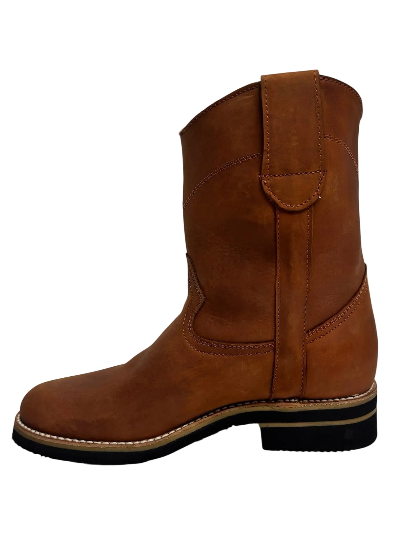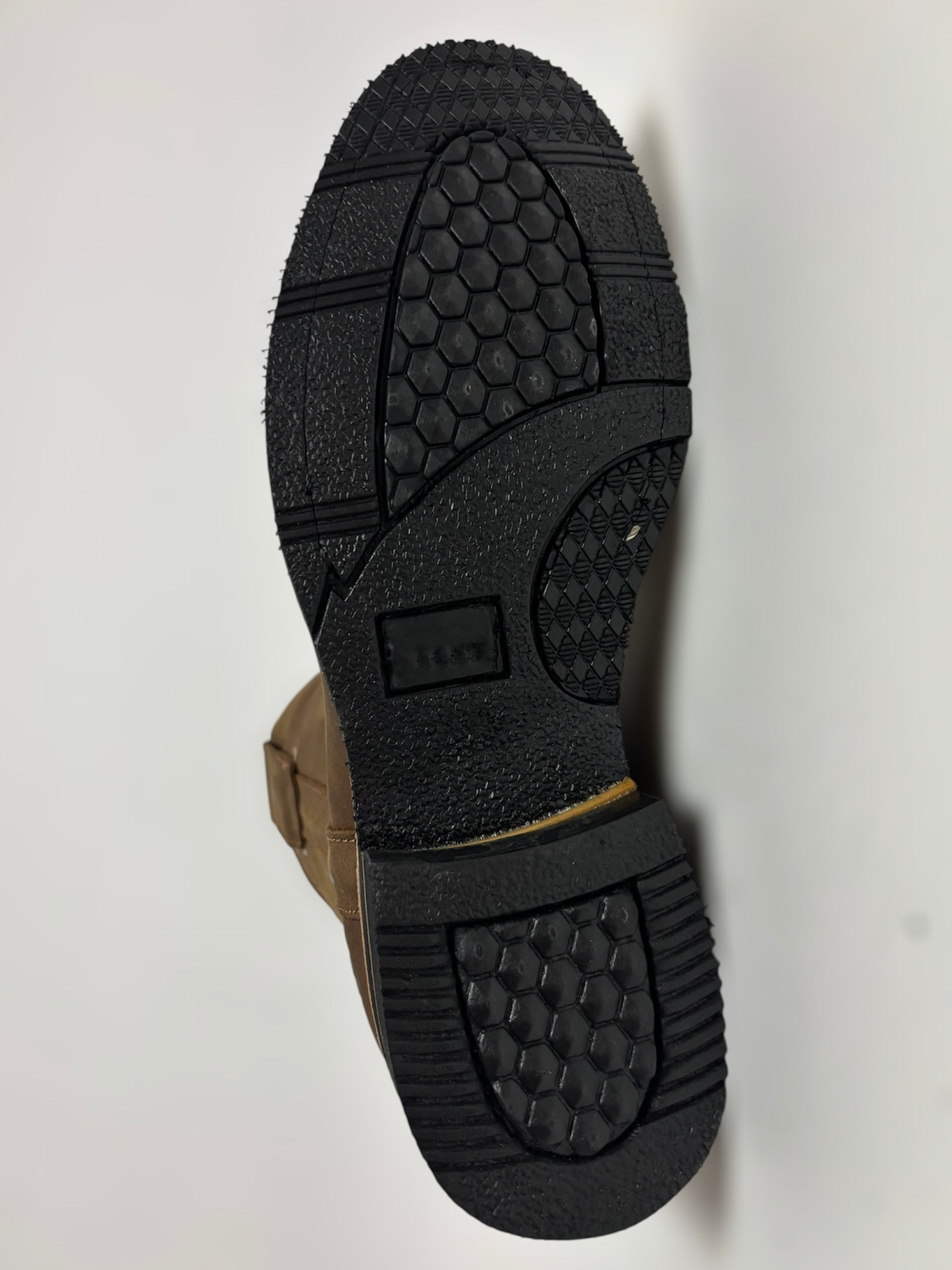 Tauro work boot made with high-resistance leather. Features reinforced stitching, slip-resistant rubber sole, and a low heel for added stability. Ideal for heavy-duty tasks or everyday wear due to its comfort and durability.